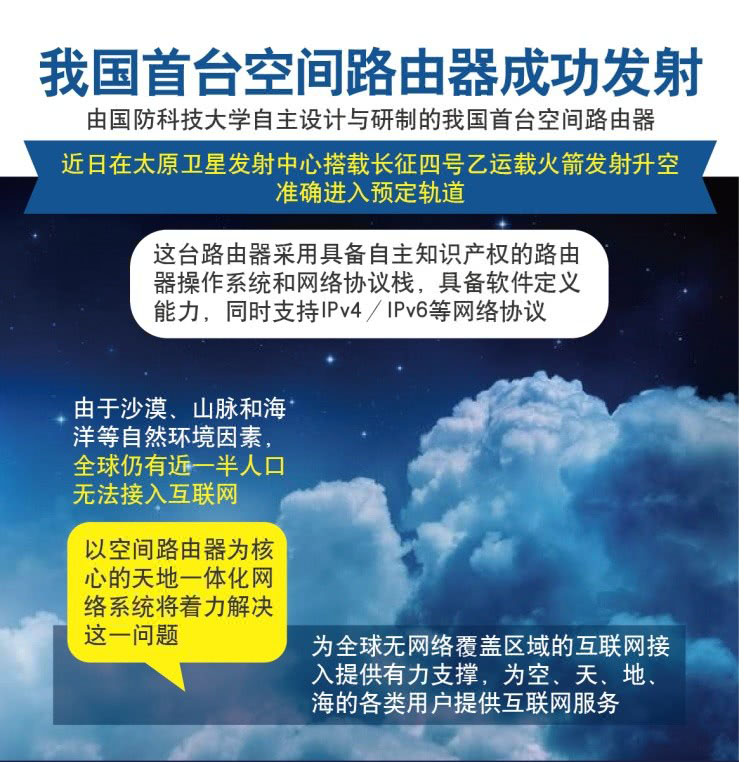 中國(guó)首台空(kōng)間(jiān)路(lù)由器(qì)準确入軌 為(wèi)無網絡覆蓋區(qū)域接入提供支撐